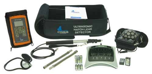 Sea water ingress is one of the major sources of damage to cargo resulting in expensive insurance claims. Cygnus Hatch Sure provides a quick and effective method of evaluating hatch seals.The system consists of a battery powered transmitter containing 19 ultrasound emitters (40 kHz).The emitters are arranged to produce an omni-directional sound field, uniformly distributed throughout the cargo hold.The receiver part of the system displays the sound energy level that passes through gaps in the enclosed cargo hold to enable the location of leaks to be quickly and accurately identified.